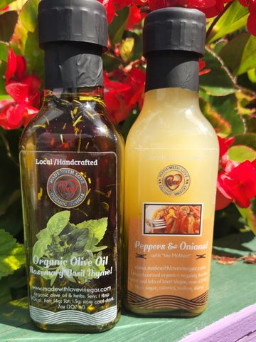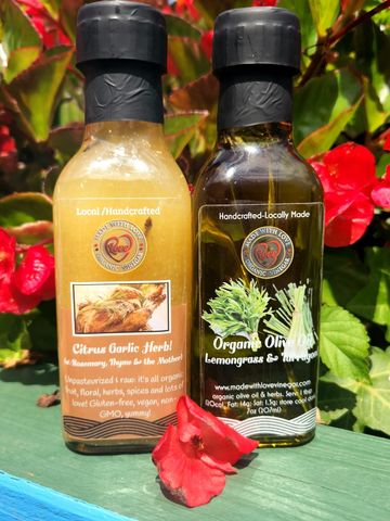Organic EVOO, avocado and grapeseed oils infused with hand-dried organic herbs!