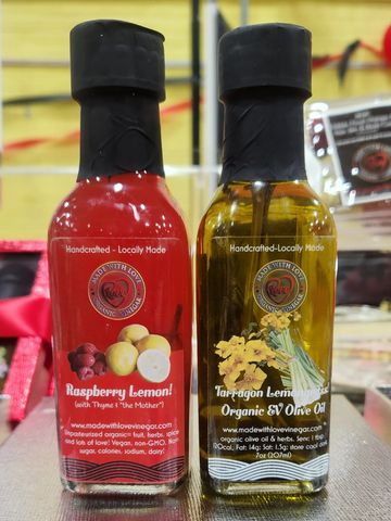 Organic raspberries, lemon and thyme make for this traditional dressing. Includes our Lemon Citrus Extra Virgin Olive Oil (15oz total) Market pickup only.