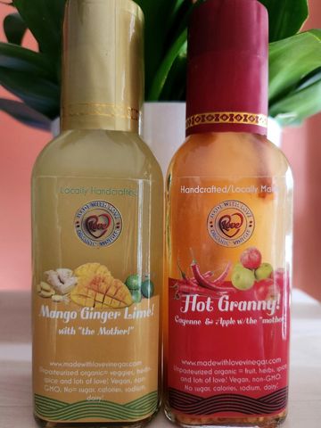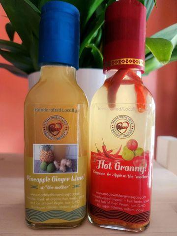 Time to increase your metabolism and crank up the heat! This detox includes our apple cayenne vinegar. Pepper makes the body sweat! Mix 1tsp each Pineapple Lime Ginger and "Hot Granny!" vinegars in 4oz-8oz of heated water. Drink every morning for 30-40 days. Use any remaining in salads and sparkling water. (15oz total) Market pickup or local delivery only.